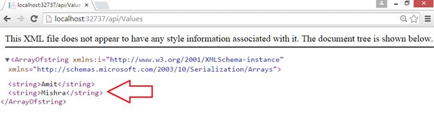 Now let’s run our Web API, press F5 to run it. So we successfully have XML representation of our list of Authors. In this request we get our Get() method.