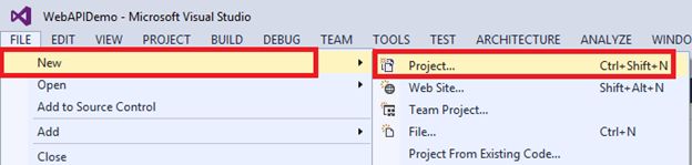 Let’s create a project for Web API. Open Visual Studio 2013, go to New and choose Project.