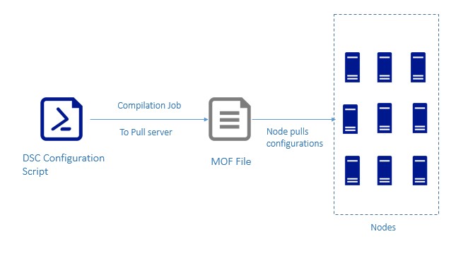 DSC pull server is nothing but a common place where all the node configurations are placed. Each node (machine) in the infrastructure setup polls this pull server to check if it is aligned with its configured state. Once the compilation job runs, the output of it i.e. node configuration is placed on to DSC pull server (it overwrites previous version of node configuration if there is any).
