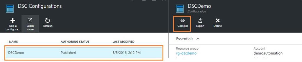 We will follow the same procedure of compilation of DSC script using Azure portal described above.