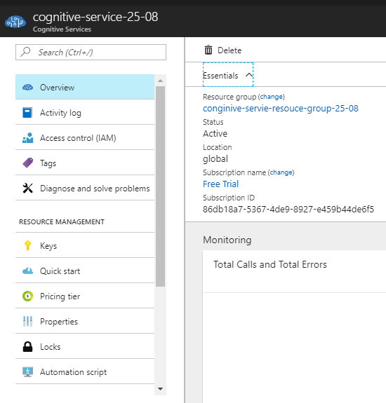 - Open the particular cognitive service and see the different options present there.