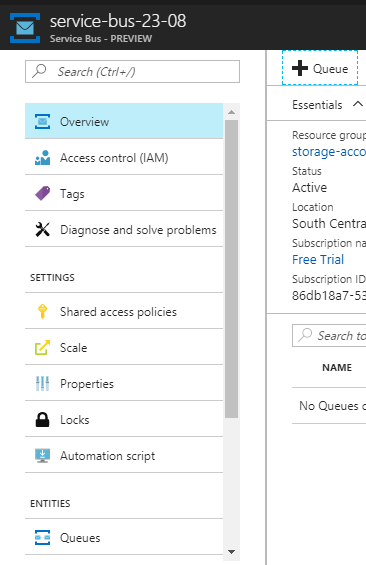- See the service-bus section, where we can see the newly created “Queue”.