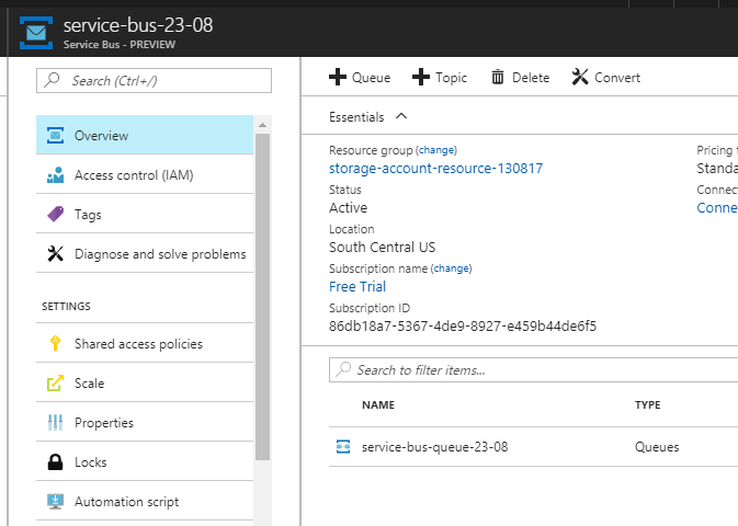 - Implementation – Create a new Azure Service Bus
