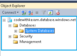 Here, I have created an Azure SQL Database named ‘test1’ under Azure SQL server ‘codewithkasam’.