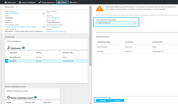 Note- If Azure SQL server is deleted, all Azure SQL databases associated with the server are deleted and cannot be restored again.