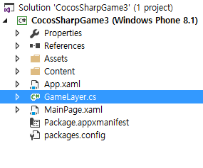 Once our project has been created, we can see MainPage.Xaml and GameLayer.CS file in Solution Explorer.