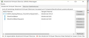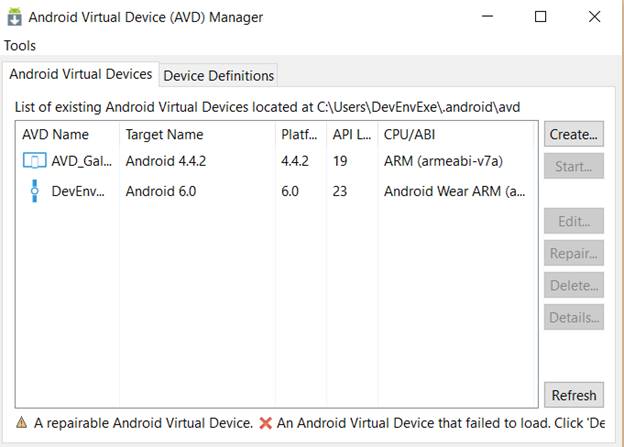 In the screen given below, you will get to know the already created emulator. If you want to create a new emulator, click on “Create “button