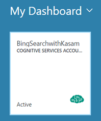 Click on Resource groups => CodeCognitivewithKasam (resource group selected) => Overview. Bing Search API cognitive account created will be listed. Click on the account name.