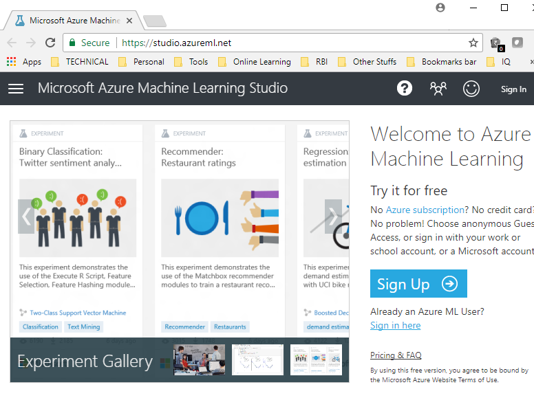 - Open Azure Machine Learning portal and sign-in into the application using your Azure credentials.