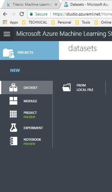 Implementation – Extract data from the titanic data-store and create a dataset in Azure