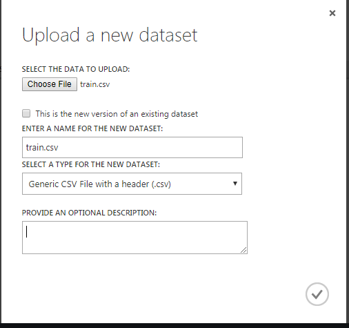 - Choose the local file i.e. train.csv and upload the data into the dataset