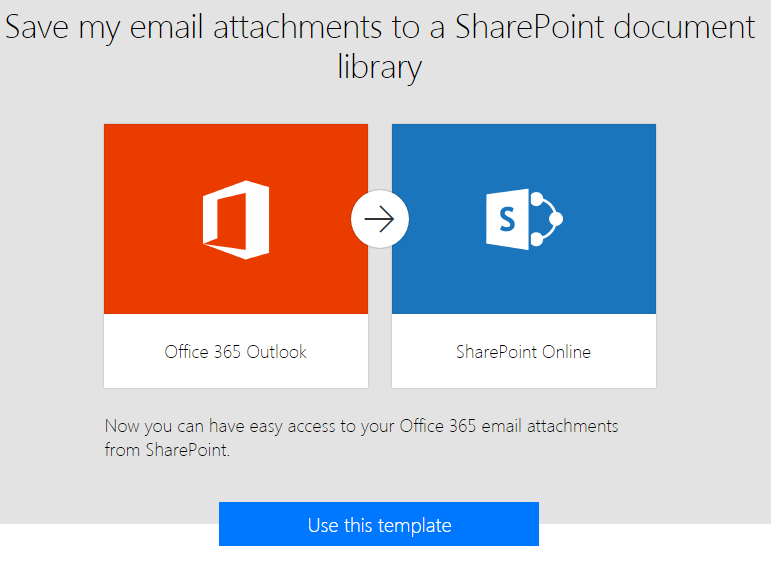 In this example, we are going to use a pre-defined template called “Save my email attachments to SharePoint Library” to create a flow.