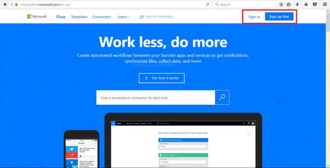 link to create a Microsoft Flow account. In the welcome page, click "Sign In" if you already have a Microsoft Flow account, otherwise click Sign up.