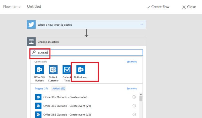 First of all, you need to authorize both the accounts in the flow. Then, search for Twitter in the search bar.