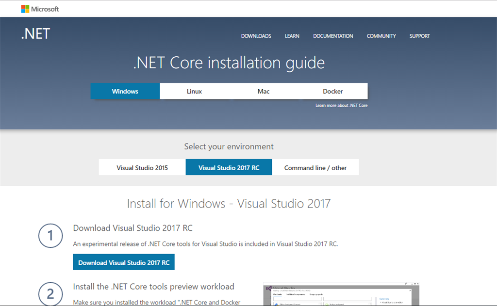 - Current version- .NET Core SDK 1.0 Preview 2.