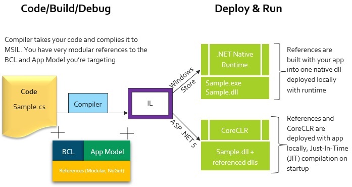 The image given below helps you to understand building and deployment of .NET Core Applications.