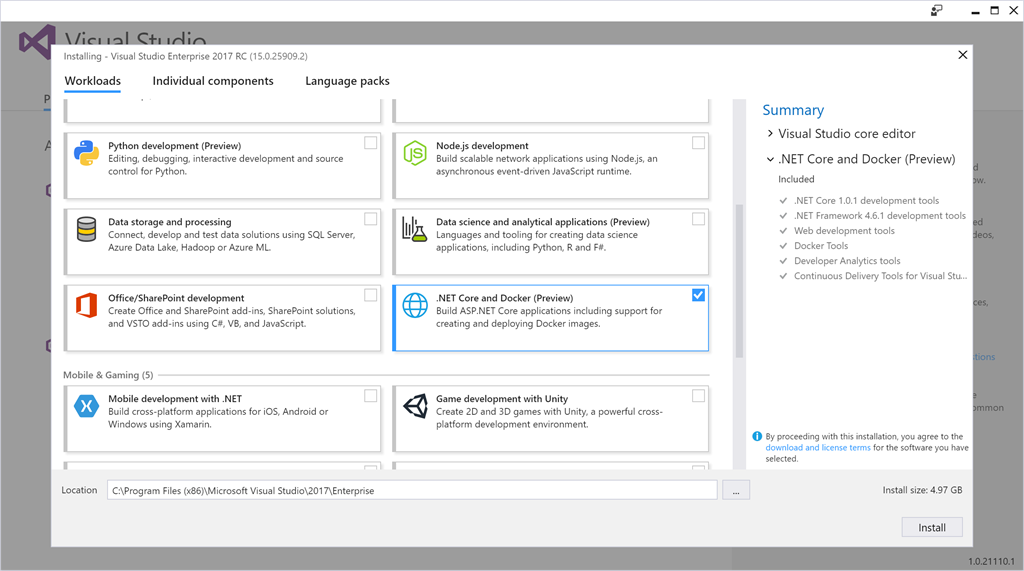 Download and install Visual Studio 2017 from .NET Community installation guide. Click here.