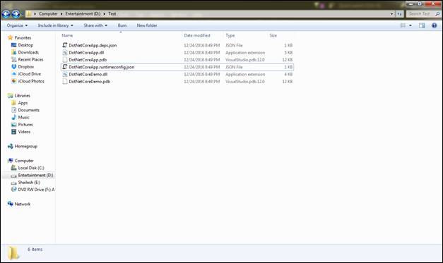 Now, if you have a closer look, there is no .EXE file. In traditional .NET framework, whenever you create any console application, you will get .EXE file, where you can double click and run the application.