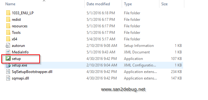 Go to SQL Server 2016 Setup folder and double click Setup.exe.