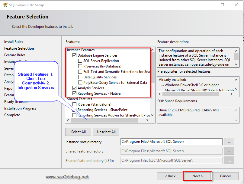 The Feature Selection Window will open and select the list features to install into your PC. Subsequently, click Next button.