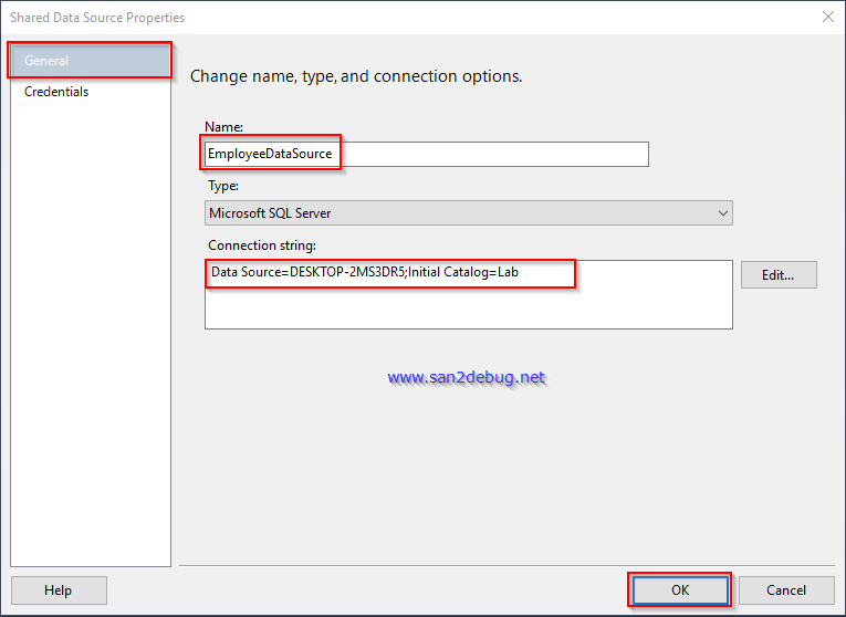 Shared Data Source Window will open. Select the new data source, connection string and click OK button.