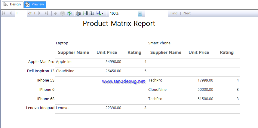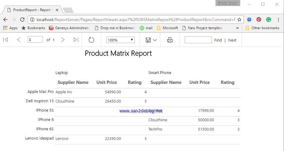 Now, you can run the report Application, followed by SSRSMatrixReport and click the ProductReport.