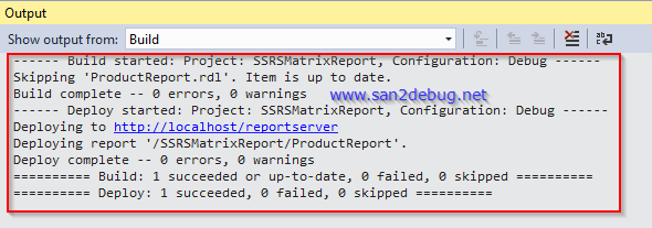 After successfully deployed the report to Report Server, you will see the information from the output Window, as shown below.