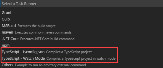 Now, select TypeScript to create tasks.json file in your Workspace .vscode folder.