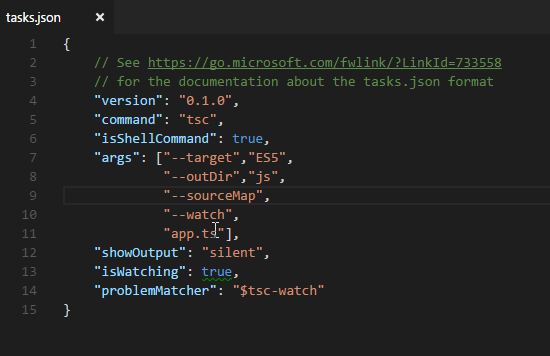 Whenever we build our code, it will use tsc command (The command tsc assumes that tsc has been installed, using npm install -g TypeScript) with several arguments like target ES5, outDir as js (I want to store compiled *.js code in js folder), watch will detect the changes and compile the code on saving. I want app.ts file to be compiled.