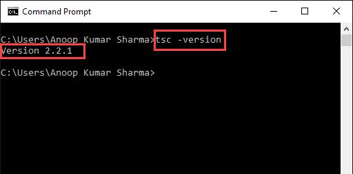 Now, open CMD prompt in order to install TypeScript. We will use NPM (Node Package Manager) to install TypeScript. (In image 1 given below, the command is used to install the latest stable TypeScript version and 2 is editors used for TypeScript).