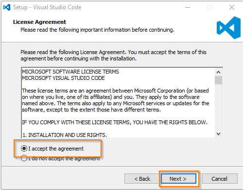 The License Agreement window will open and check the “I accept the agreement” radio button. Click Next button.