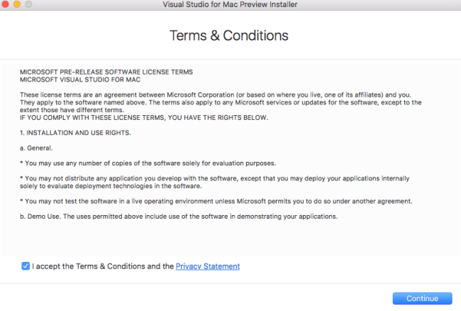 The installation of Visual Studio for Mac is very simple. Once you download the installation setup from Visual Studio for Mac, follow the steps mentioned below.
