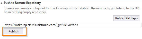 Now, you can copy and paste the Git Repo URL from the VSTS. Click Publish button as shown below