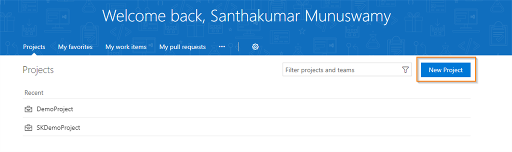 After successfully logging in to VSTS, you can see the host my project page as shown below