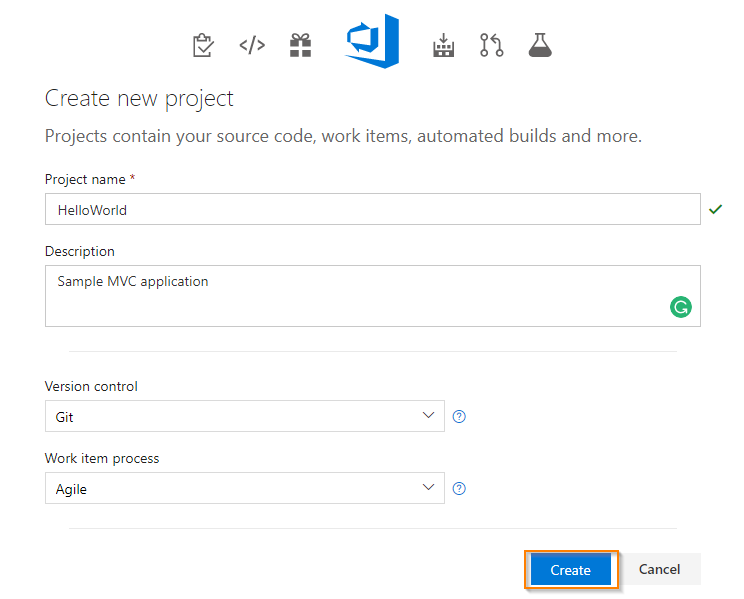 How to create a new project in VSTS