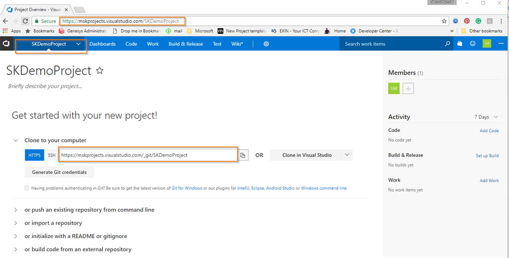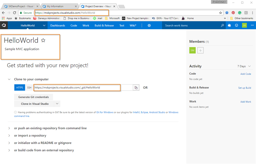 After successfully creating VSTS account, you can see your project details as shown below