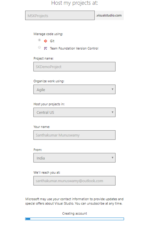 How to create Visual Studio Team Services account
