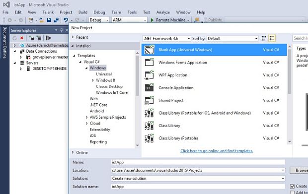 You will need to update Visual Studio. Install Update 3 from the Extensions and Update dialog in Visual Studio. Also you need to install Universal Windows App Development Tools in Visual Studio if not already installed. Download and install Windows IoT Core Project Templates from the following link .// https//marketplace.visualstudio.com/items?itemName=MicrosoftIoT.WindowsIoTCoreProjectTemplates //.