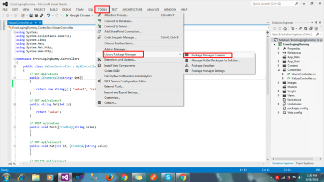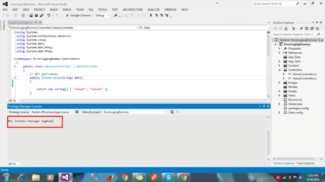Step 2 - First, add log4net in your Solution, using NuGet Package or PM console. I am going to add log4net by PM console.