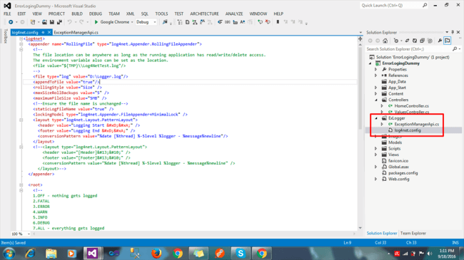 Now, I am going to integrate Exception Filter with log4net. So, follow some steps....