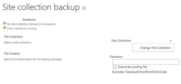 Here, you can have your site collection backup configured files for various purposes, for example, to save a copy or to restore it to another server. Here, you can configure the Central Admin to take a backup of a site collection and store it at your defined location.