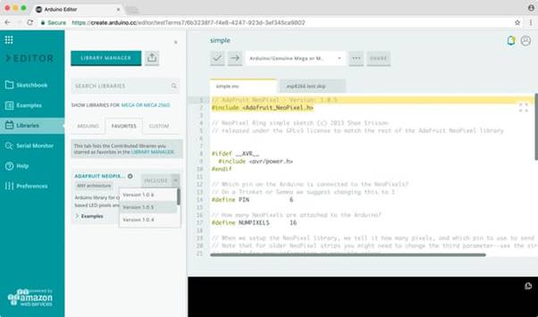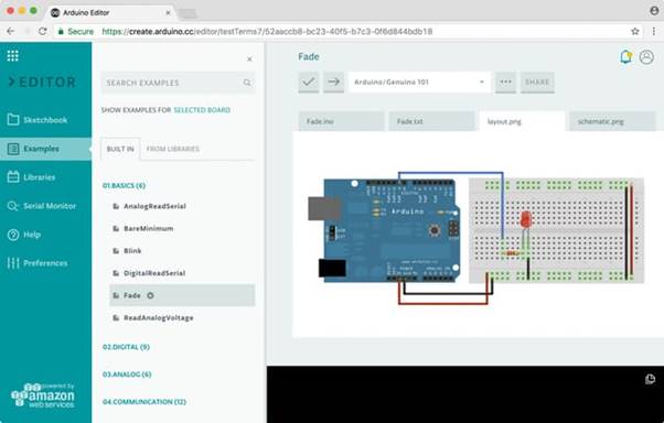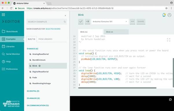 This IDE (Integrated Development Environment) is a part of Arduino Create, which is an online platform that enables the makers to write the code, access tutorials, configure boards and share the projects. Designed to provide users with a continuous Workflow, Arduino Create connects the dots between each part of a maker’s journey from an inspiration to implementation, which means, you now have an ability to manage every aspect of your project right from a single dashboard.