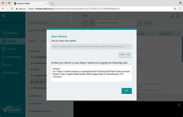 You can even embed your sketch in a Webpage by copying the code provided in the Share Window.