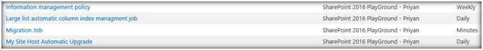 The timer job is by default set to run on a daily basis and automatic index management allows the timer to maintain the column indices on the lists to provide an optimal query performance within the views associated with the list.