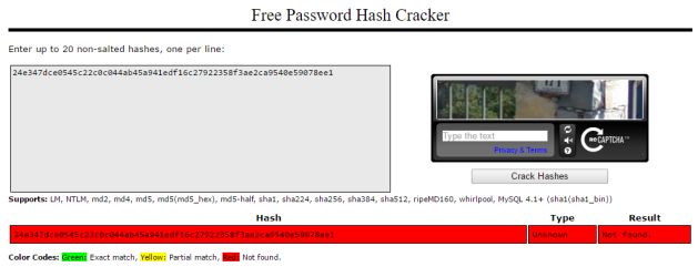 Before I continue further, I wanted to share the point of these passwords and their hashes being weaker. There are many hacking tools available, such as reverse look ups. Let us take our first password and see if that can be cracked. I used CrackStation service to crack the password and convert it back to its original text form,