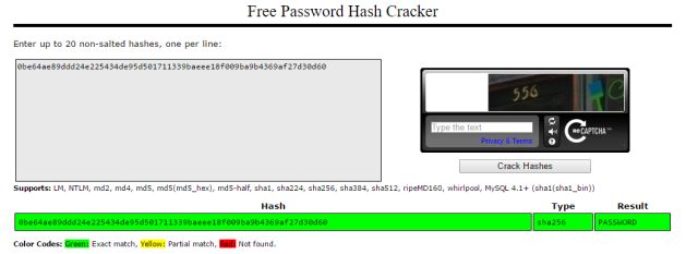 Figure 5: SHA256 based password converted back to its original form