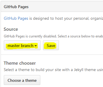 Second, you need to do settings in your repository that from which branch your website should be rendered. For doing that, select your repository in GitHub. On the top right, you will see a "settings" link (just below the repository name).