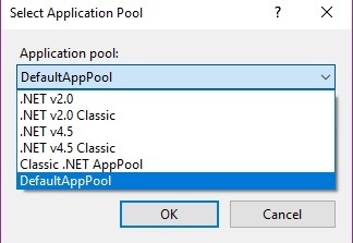 Choose the application pool depending on your application configuration. In this article, we are going to choose DefaultAppPool.