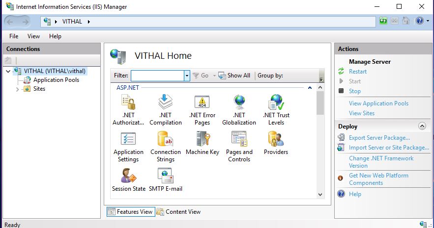 The above image is of IIS 10 Manager of my Windows 10 machine. The view as well as options might be different on your machine depending on the OS version.