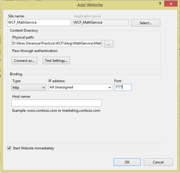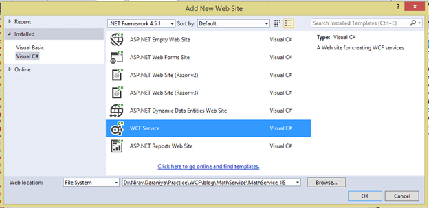 Here, I will explain you about IIS hosting. We have already developed WCF Service for addition in the previous article. So now, we have to host it on IIS.